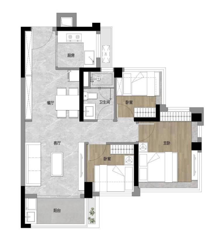 ——77㎡三房两厅两卫,全新升级三房——