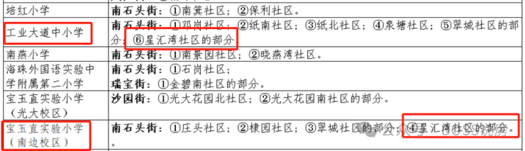 目前项目正式官宣了小学是海珠区工业大道中小学,并且纳入宝玉直实验小学教育集团成员学校,计划更名为广州市海珠区宝玉直实验星悦小学。