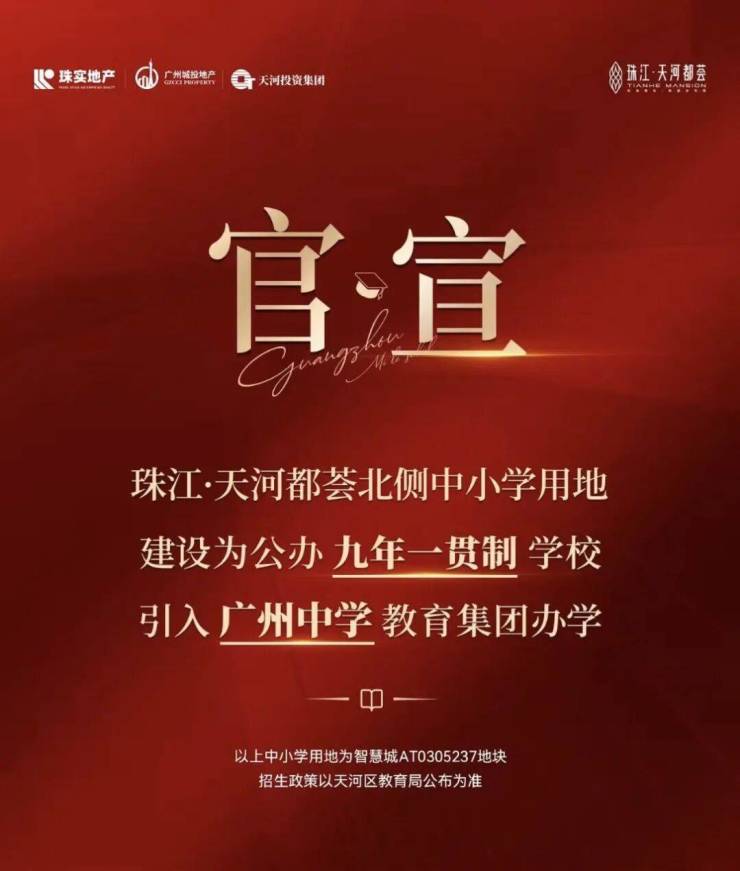 项目北侧教育用地建设为公办九年一贯制中小学,引入广州中学教育集团办学。