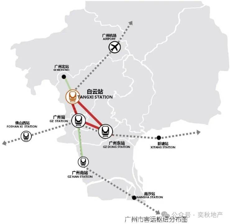 广州白云站𝐓𝐎𝐃,规模约263万㎡,体量4倍于广州南站,帷幄“国际交通枢纽湾区门户”主引擎,白云站TOD链接全国。
