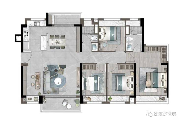 萃取地道岭南风韵,经典岭南审美简约呈现,传统造园手法与现代园林技术结合,首创新岭南主义风格;近9米架空层,保障通风凉爽舒适;南偏东/西33度角,取得最佳通风采光效果;点式阵列布局,将法线错开,最大化景观视野和楼距空间。