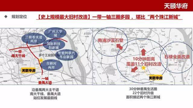 番禺市桥是广州南拓的桥头堡,是承接广州都会区与南沙自贸区两个中心 的重要桥梁,是未来番禺发展重点区域;
