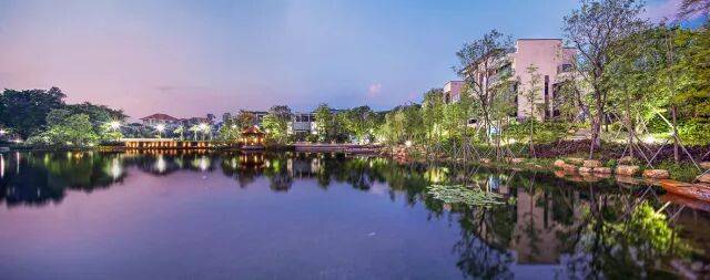 约 7500 平方米中心景观湖,湖心岛,沿湖走廊,3 大景观亭台。