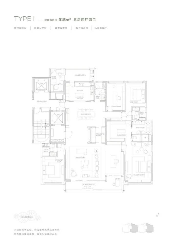【315㎡户型】 南北双阳台-独立保姆房-巨幕大宽厅-私家电梯厅