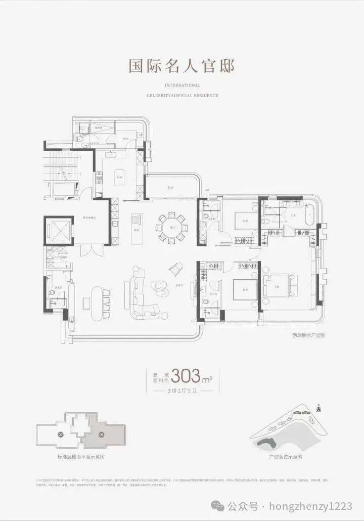 首推T3栋中,有一层两户的303m2户型,大三房或大四房可选;也有定制的605m2,一层一户;更有两套1200m2的顶楼复式。T5栋的户型为197m2,三梯三户,也做到了南北对流,北向望万博中心景,南向看花园。