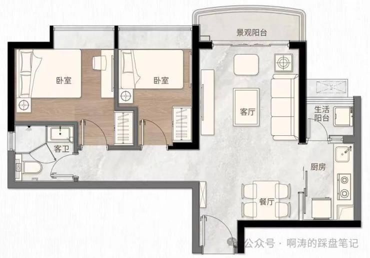 双入户大堂,星级五层地下车库,匠造建面约 69-144m²臻美二至四房,户户双阳台,LDK 一体设计, 布局方正实用。