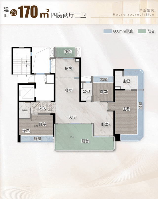 南北双阳台,则做到生活与家政琐事分离,南向的主阳台,可以完全成为你欣赏风景的观景台。