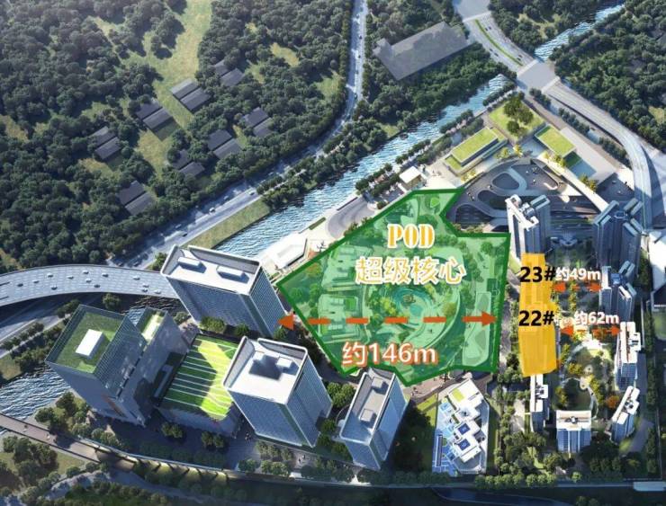 南向超100米楼间距,北向最大达约62米;北向看中央花园,远望琶洲CBD景观;南望POD超级核心