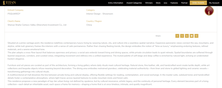 作为全球创意设计领域的标杆性奖项,美国TITAN地产奖,素有“地产界奥斯卡”之称,由国际奖项协会(IAA)主办,以严苛评审体系与高质量标准著称,旨在遴选全球房地产、建筑与室内设计领域的巅峰之作。
