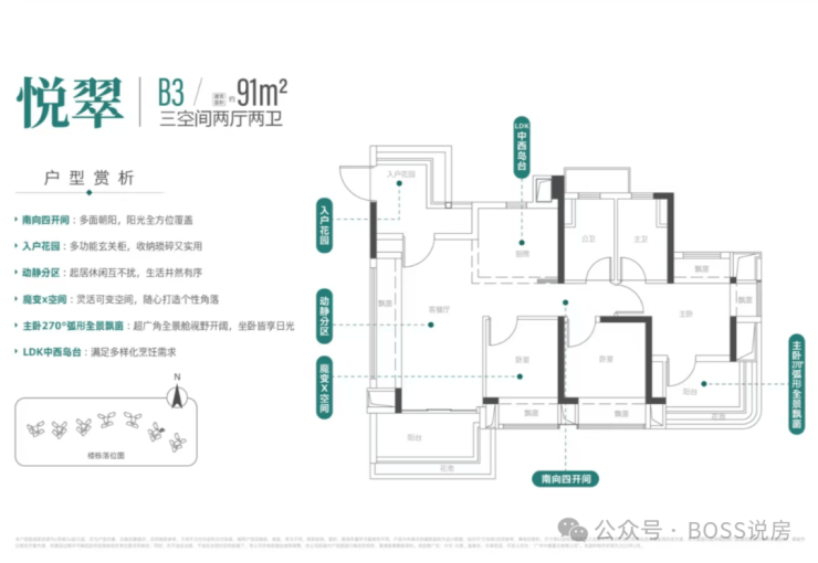由于项目周边分布着环城高速,广州大道,和南洲路三大主干道,开发商针对噪音的问题也做了五大布置
