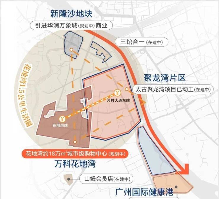 万科理想花地朗庭位于广州市荔湾区花地湾商务组团,处于白鹅潭与聚龙湾双太古商圈之间。根据《荔湾国土空间总体规划》,该区域被定位为广州未来最具发展潜力和想象空间的地段之一。