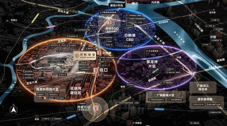 项目傲踞白鹅潭CBD核芯地段,归属于“产-商-居”黄金三极中的花地湾商务组团,先天居住属性优越。