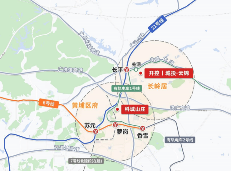 【开控|城投·云锦】由广开控股、广州城投和广报实业三家实力国企联合开发,坐落于广州市黄埔区长岭居核心区,距离科学城区府不到4公里。