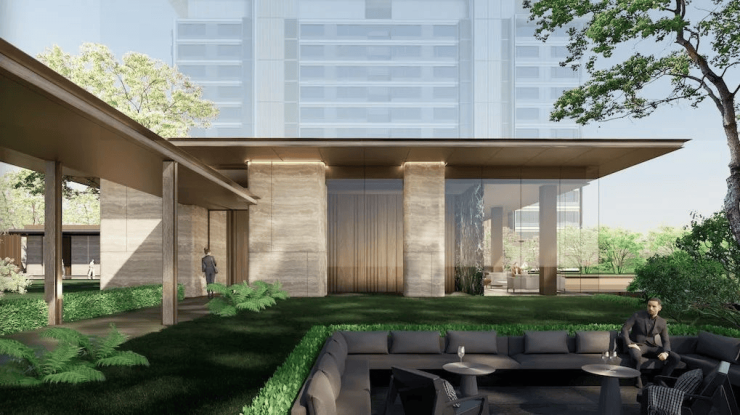 小区内部景观规划了约10000㎡的中庭行政级花园场域,同时配备有高端项目象征之一的下沉式庭院、酒店式会所,部分楼栋底层架空设计。