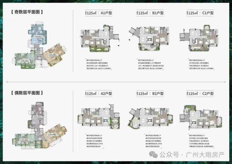 项目分为2个组团共7栋住宅,2个小地块,围合式布局,容积率仅2.5为全岛最低,绿地率达30%,地下车位705个,地面车位77个