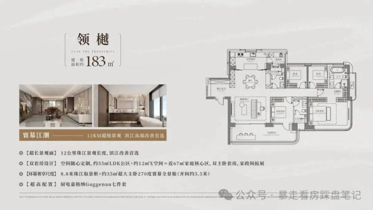 高审美、高品味,岭南传统经典与当代摩登海派风格融合,打造超1.5万㎡中心森林庭院,营造花园式的松弛图景;高规格打造全方位社区生活场景,约4000㎡全龄无界会所,每栋住宅标配一个独立会所,涵盖精英酒店式会所与4大主题泛会所,配备双泳池(室内恒温泳池+户外无边界度假泳池),满足全龄段休闲娱乐需求;高装标、高细节:全方位豪宅化,配置直接对标单价10万+豪宅: