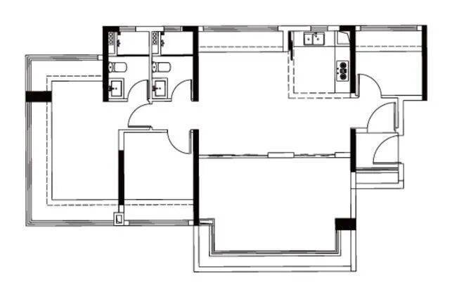 约104㎡ 4空间2卫:6.1米大阳台,四开间朝南,空间利用率高。