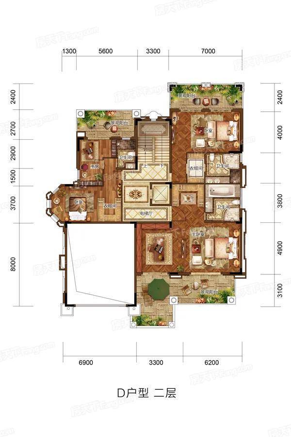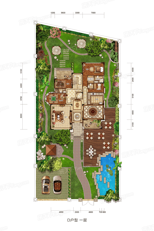 户型五:777㎡ 户型 花园面积:1000-1597㎡