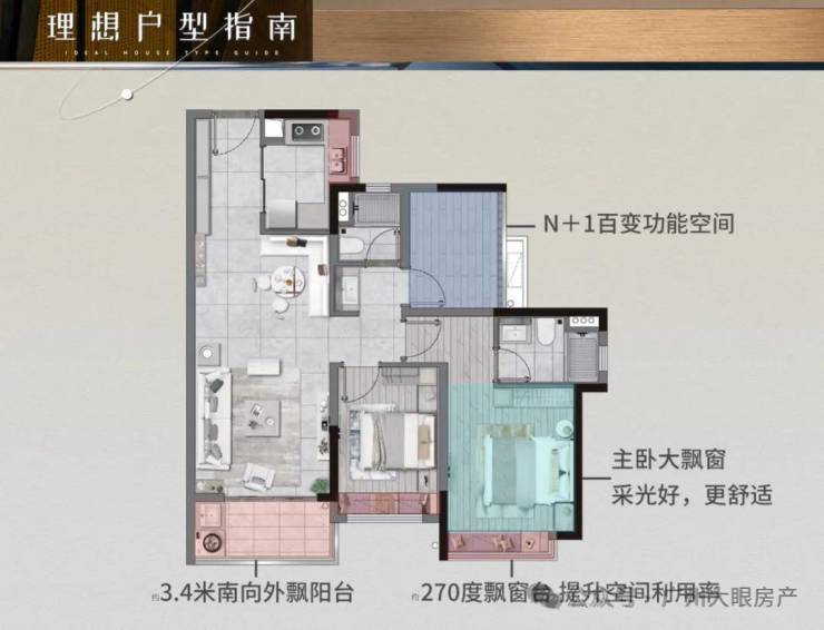 采用LDK布局,连通270°朗阔阳台,南北对流主卧套房,L型瞰景飘窗