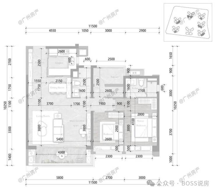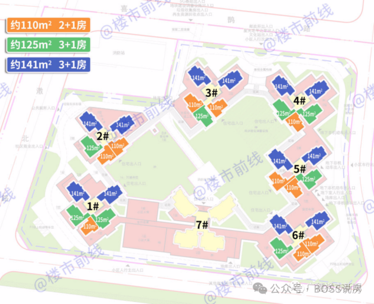 整体规划:7栋超高层住宅+4000㎡商业