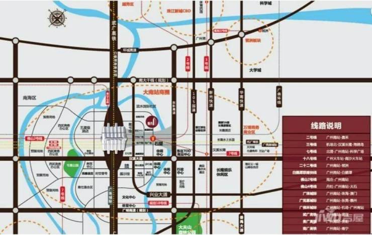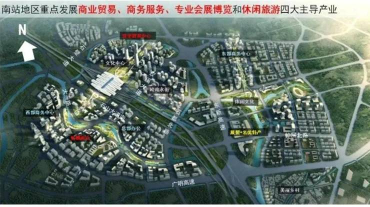 高快速路网环绕南站周边:广明高速、南大干线、东新高速、广珠西线。