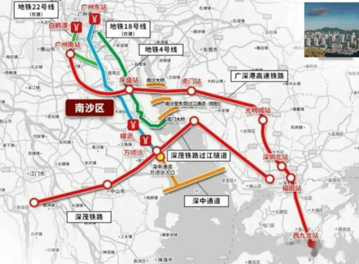 在这条发展中轴上,规划有“南沙枢纽先行启动区”及“南沙科学城”,重金在建“深中通道”、“2025年全运会会址”等超大项目,是南沙投资强度TOP1的板块,未来想象空间和潜力非常大。