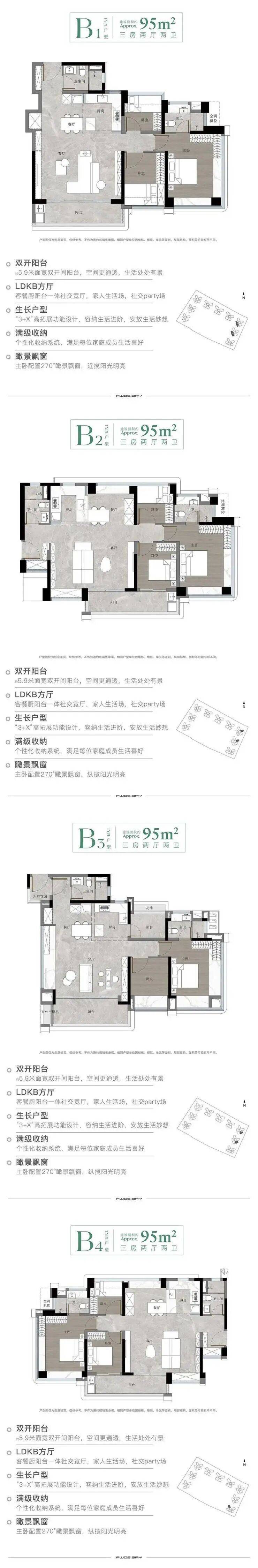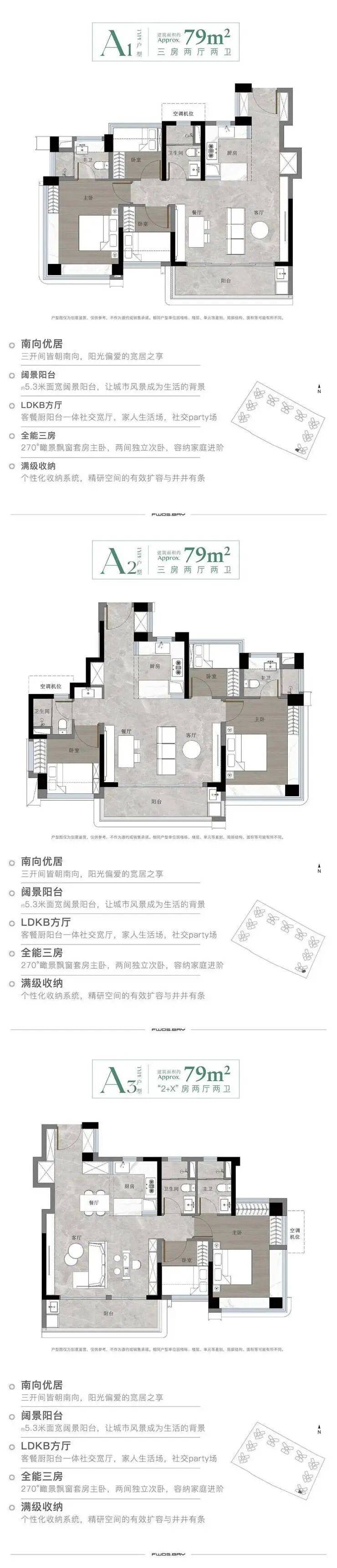 中建玖合·未来方洲的户型设计十分注重空间的合理利用与舒适度。项目首次推出的79平至142平的新规户型采用南北对流设计,并且每户均有大阳台或宽景阳台,居住体验极为舒适。79平的三房户型、95平的三房、108平四房等都具有超高的使用率,且布局合理,空间开阔,最大程度利用自然光线。此外,项目还提供竖厅与横厅的不同设计,满足不同家庭结构的需求。