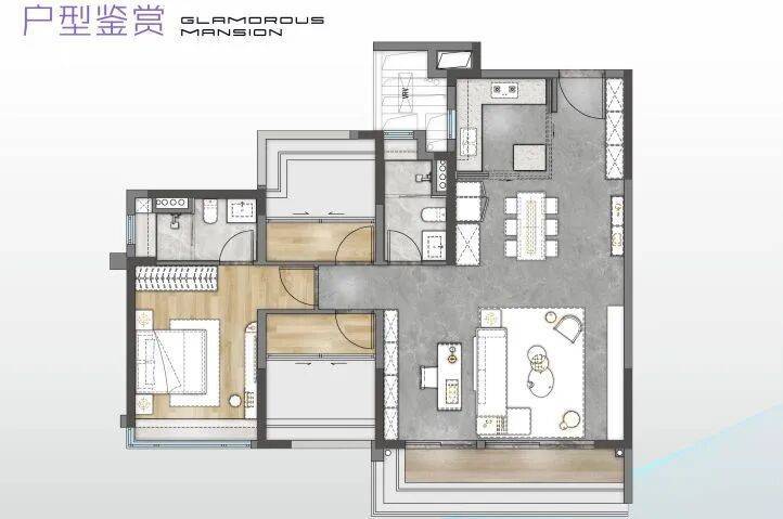 阳台较为亮眼做了长阳台,在市中心准现房中,此户型带了点改善属性。