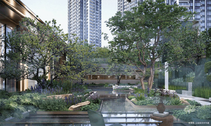 而约2.8万平园林,方案效果也很不错。园林内设计了不少休憩场所,并且借助地势的高低起伏,还设计了观景平台。各种花草树木的搭配也很协调,待实景展示区开放后,大家可以实地看看。