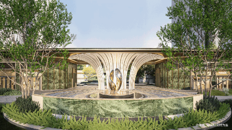 小区配套:社区主入口依托榕树灵感雕塑,以水景雕塑为核心,大量采用名贵石材设计为“年轮广场”,打造酒店式环岛落客区,尊享四重归家礼序。
