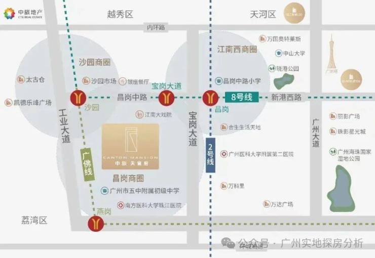 项目位于海珠西板块昌岗中路与宝岗大道交汇处