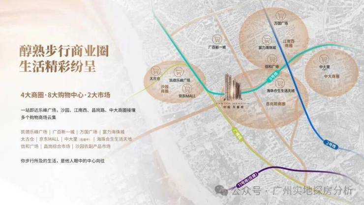 项目约500米内就有广百百货、韩潮汇、海悦广场。且周边环绕昌岗、江南西、沙园等成熟商圈,拥有沙园市场、太古仓、凯德乐峰广场、京东MALL步行即达,广百新一城、富力海珠城、万国广场等生活便利度高。