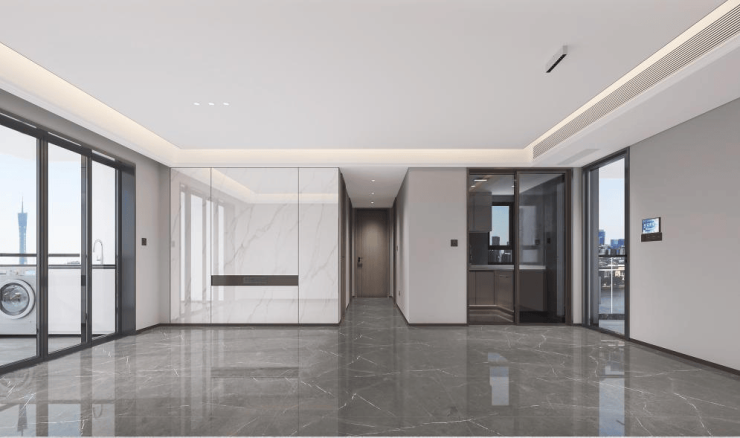 长达28米的星空入户大堂、高定2.9米长双层中空巨幕玻璃幕墙。