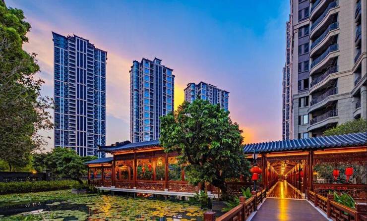 其标志性的“星中式园林”,将东方美学与现代人居完美融合,每一处雕梁画栋、每一条水系脉络,都经过数十轮方案打磨,成就不可复制的视觉盛宴。