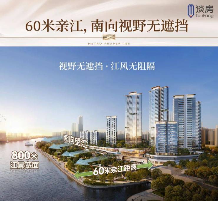 天赋江境,主城难得南向“60米亲江+800米宽幕”