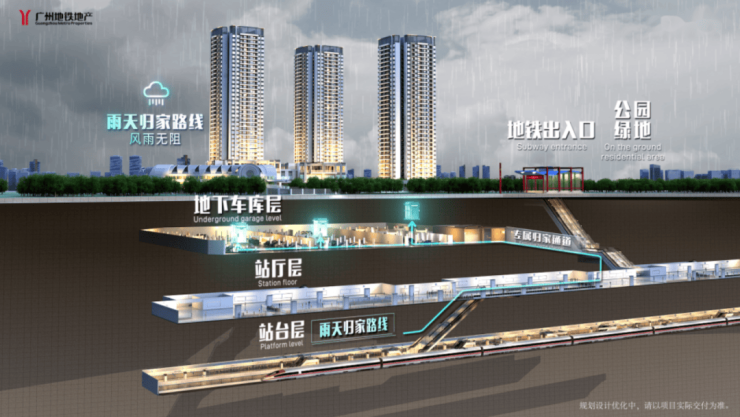 此外,还有广州地铁地产配备的,从小区电梯厅直连地铁站厅的归家通道。