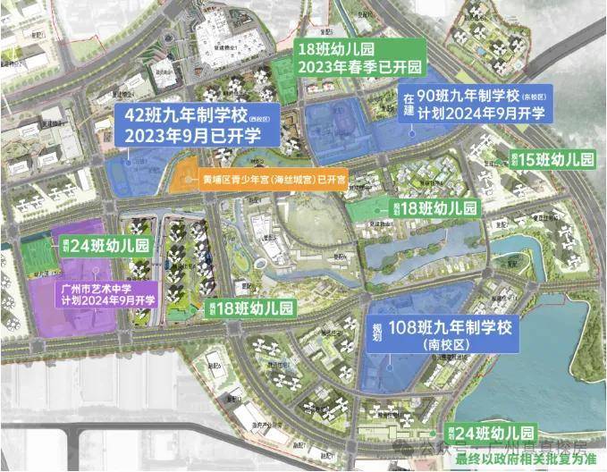15 年陪伴式教育:引进1所九年制学校广铁一中铁铮学校,3个校区,超万个学位(规划中),还规划6所幼儿园、1所市属艺术高中、1所青少年宫。铁铮学校、艺术高中就在【中央公园】组团附近,实现孩子从小学到高中都能步行上学。