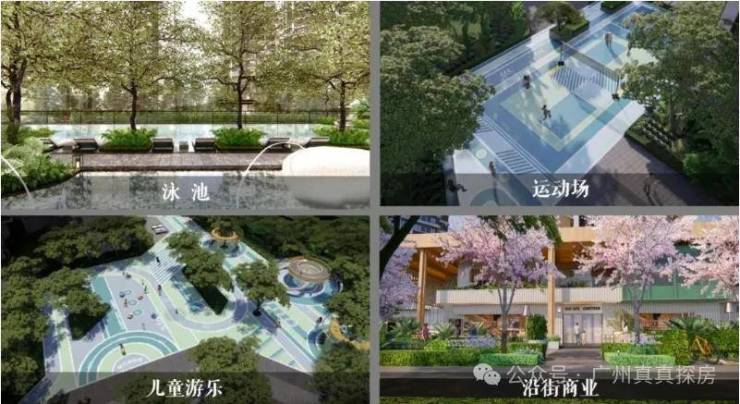 社区楼下涵盖约400㎡泳池、儿童游乐天地,运动场、户外健身器械,以及景观休憩廊架和漫步道等多功能配套资源。