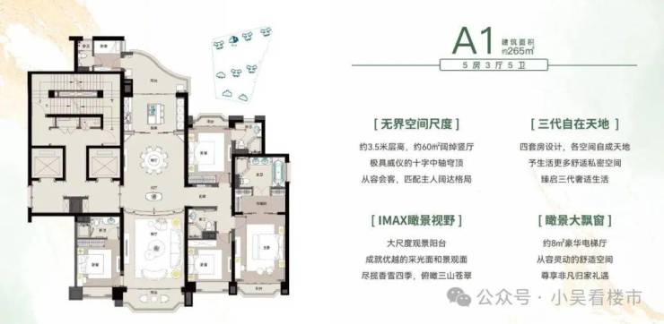目前项目主要在售R40-1.2.3栋和R5-5栋,户型为130-147-216-238-265平的三至五房,单价2.5万起!面积越大越贵,有毛坯有装修,户型图如下: