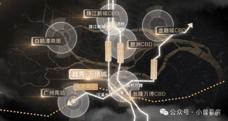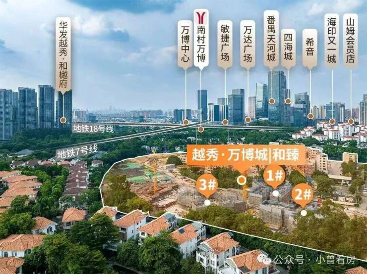 越秀万博城的核心配套设施,本身就是一座“城中之城”的完整生态体系。项目无缝接驳地铁7号线、18号线(已开通)及规划中的线路,并通过地下空间与万博商圈各大综合体相连,形成庞大的地下商业王国;地面之上,超高层地标建筑群与大型购物中心、五星级酒店、文化场馆交织,构建24小时不落幕的活力之城。其最大优势在于 “双地铁上盖+TOD枢纽+成熟商圈”的三重价值叠加:不仅实现与广州南站、珠江新城的高效连接,更直接坐享万博商圈已成熟的巨量商业、商务与人流。同时,项目规划有大型生态公园与高品质住宅区,将繁华商业与绿色宜居完美融合。