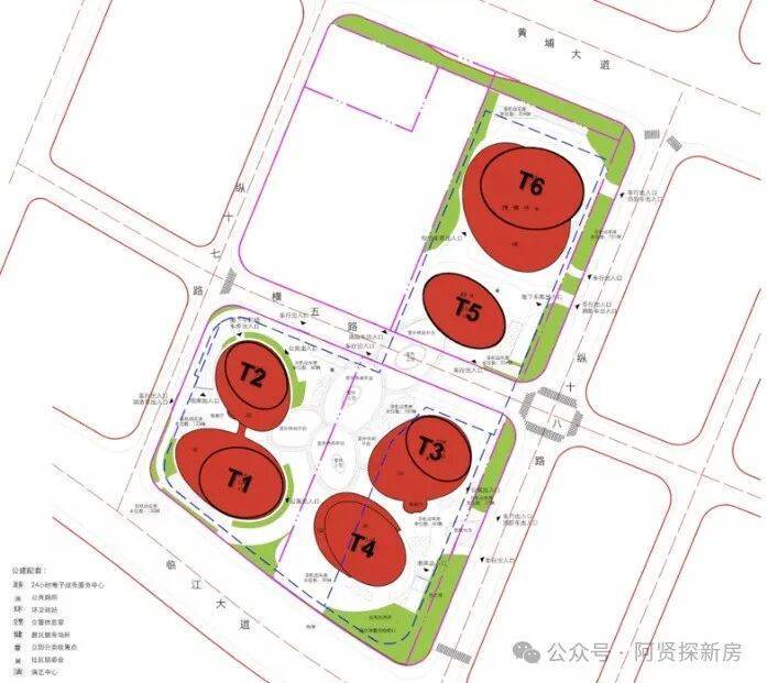 广州鹏瑞1号规划了6栋建筑,分别T1、T2、T3、T4、T5、T6。