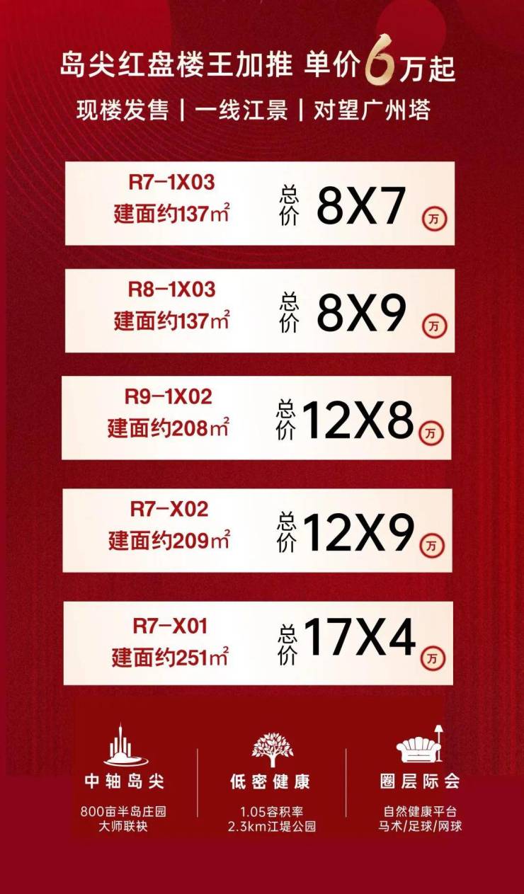 ●中轴城市江景叠墅:广州中轴之上南向一线望江叠墅,占据广州第二个中轴岛的地段资源及不可复制的自然景观资源。