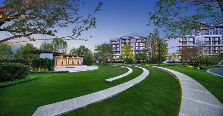 『瓏岸』组团的开发,利用园林设计和建筑设计来发挥地块优势,在岛中央再造一座“绿岛”,打造一个与自然共生的组团,为客户创造一种更有生活质感的墅居生活,实现对城央岛居自然资源的占有。