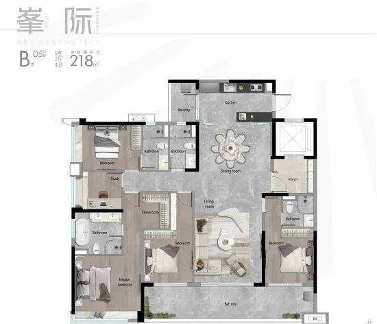 五期的产品相比之前来说尺度更大,产品线更高端,涵盖99/109/116/128/136/140/187/218㎡三至四房