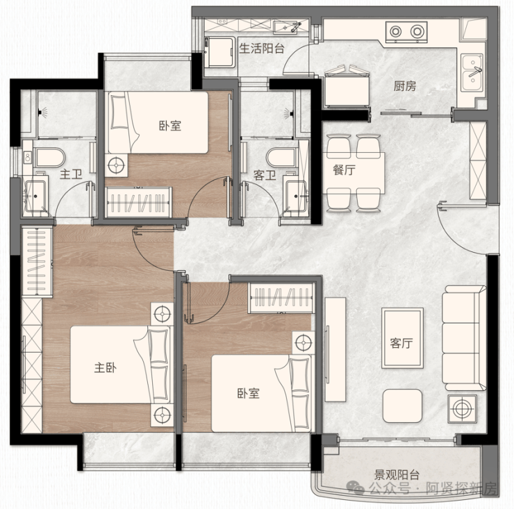 ·全优空间组合,动静分区