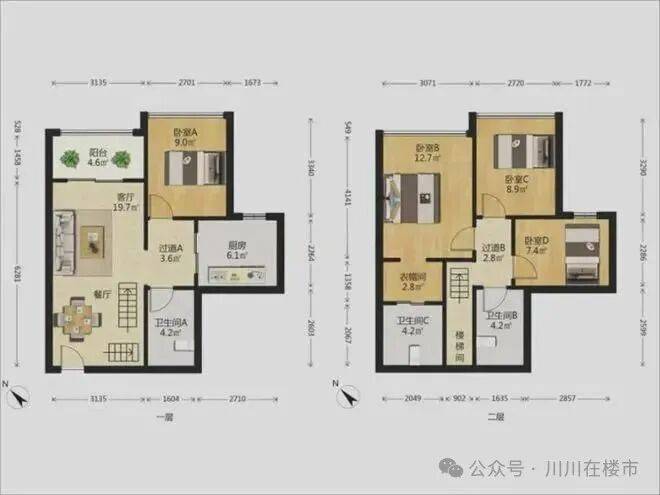 今天介绍的这套房子也是复式单位,建筑面积97.82平米,四房二厅三卫一阳台带储物间。赠送率超高,丝毫不逊于近期新规下的新产品。