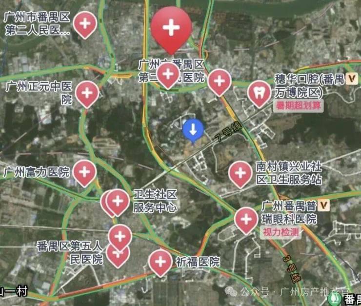 附近有两家三甲医院(番禺区第二人民医院、广东省妇幼保健院),并且正在建设中的国际医院将进一步提升医疗服务水平。