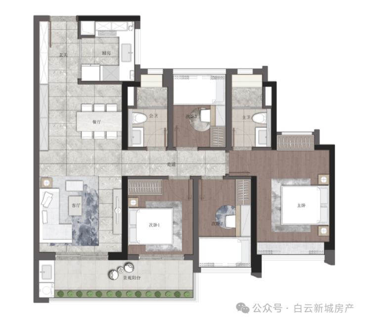 3. 102㎡四房二卫户型