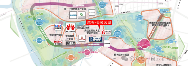 项目地处白云湖数字科技城启动区核心位置,所以该项目周边城建也是版块内相对最完善的。