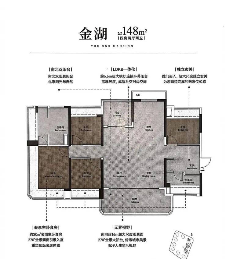 ▫️132-148㎡楼王户型:270°弧形玻璃幕墙,金山湖景尽收眼底!